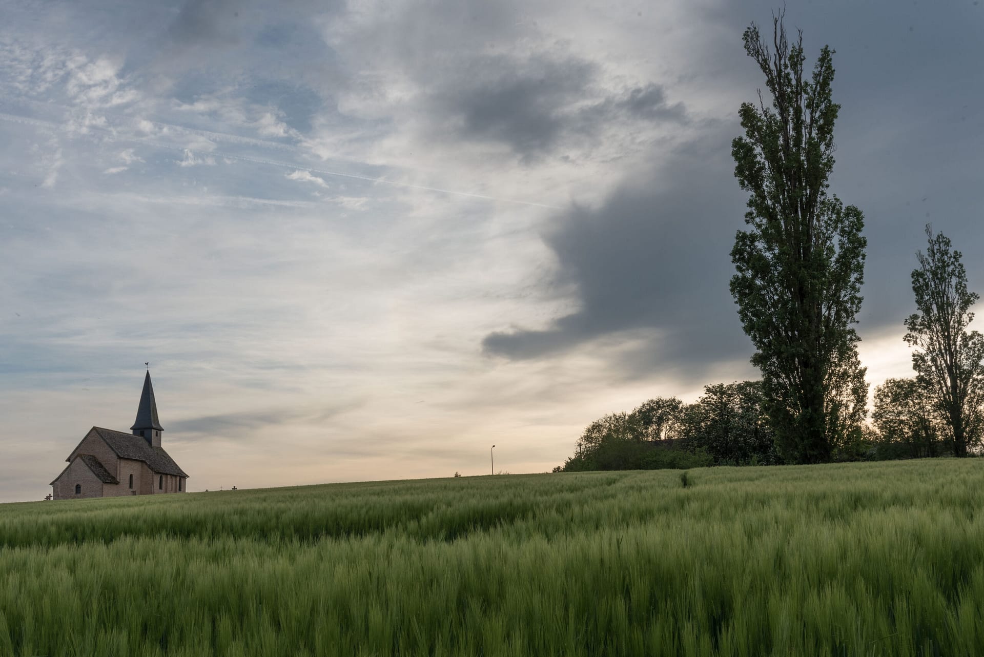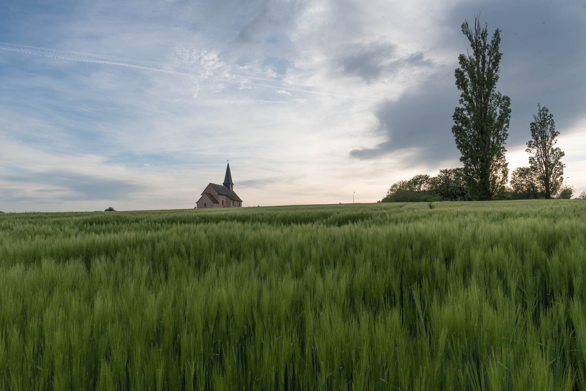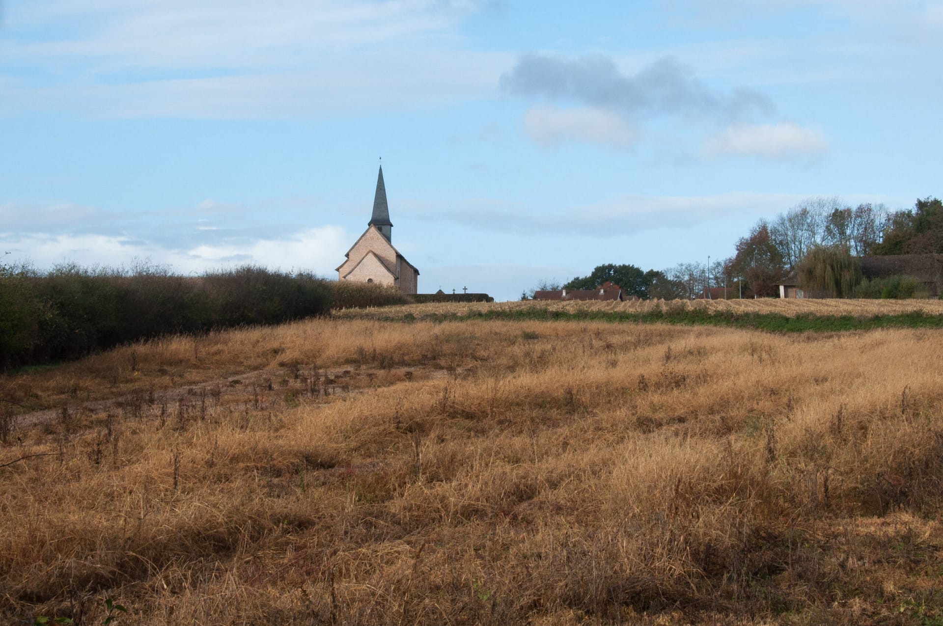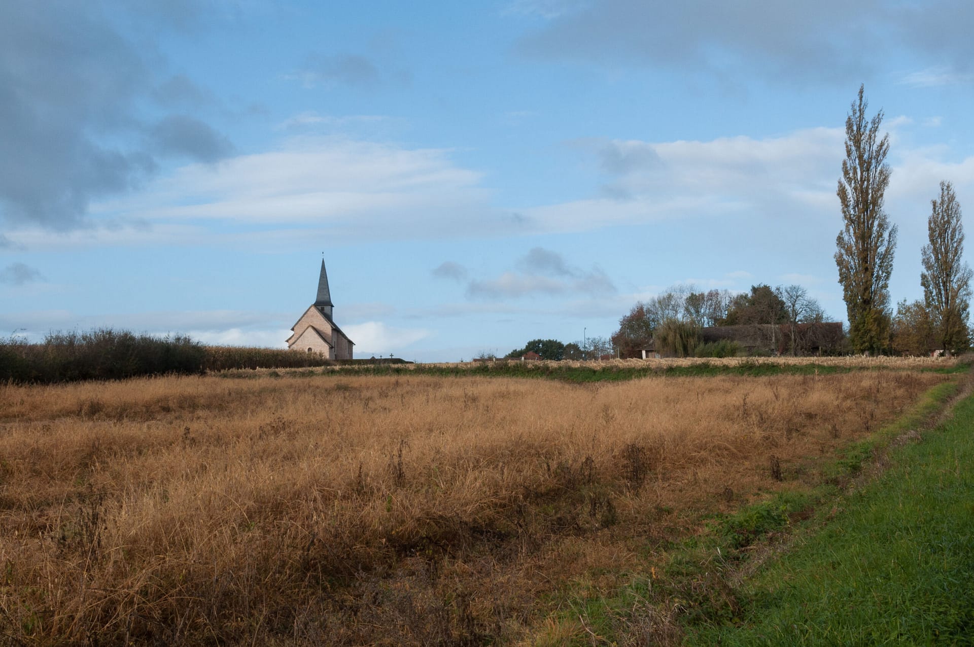 Bien sûr l’élément fort du tableau c’est Christina mais le décor, sobre et inhabituel, participe à la création d’une atmosphère étrange et légèrement angoissante avec une bâtisse, au loin, au sommet d’une colline et une terre agricole, vide, en avant plan. C’est ce décor inaccoutumé que j’ai reconnu, ce champ en pente douce et le bâtiment isolé, l’église, au loin. Une émotion est née, j’ai repensé au “monde de Christina” et j’ai tenté avec la photo de retrouver cette atmosphère si particulière. Je retourne de temps à autre dans ce lieu reculé pour ressentir la poésie du paysage.