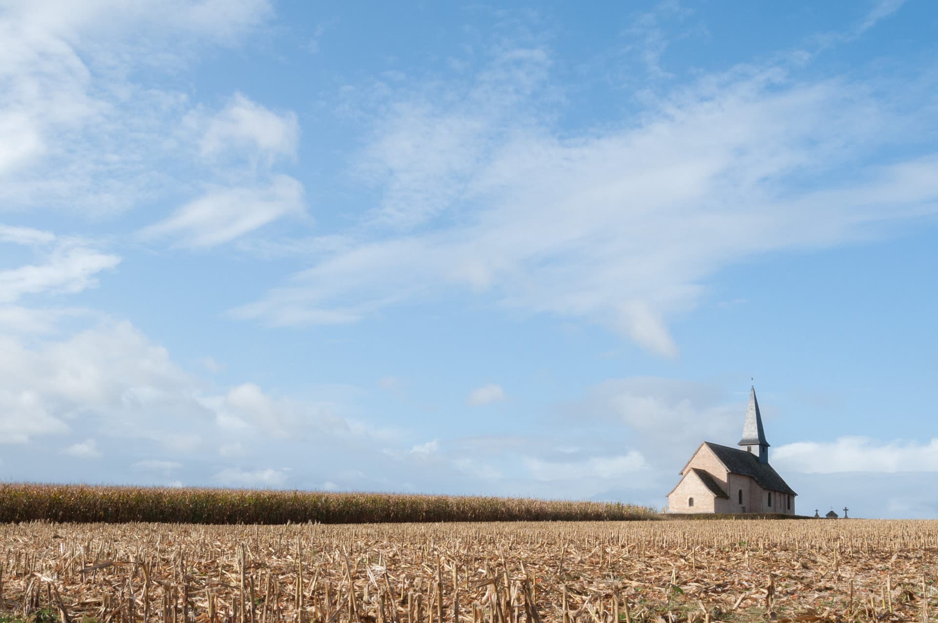 Sur les routes de mon enfance, en chemin pour une visite à ma famille en Bresse, j’ai été frappé par un paysage singulier qui m’a ramené à l’esprit un tableau célèbre, découvert au musée quelques années auparavant, une toile intitulée Christina’s world – le monde de Christina – peinte par Andrew Wyeth.